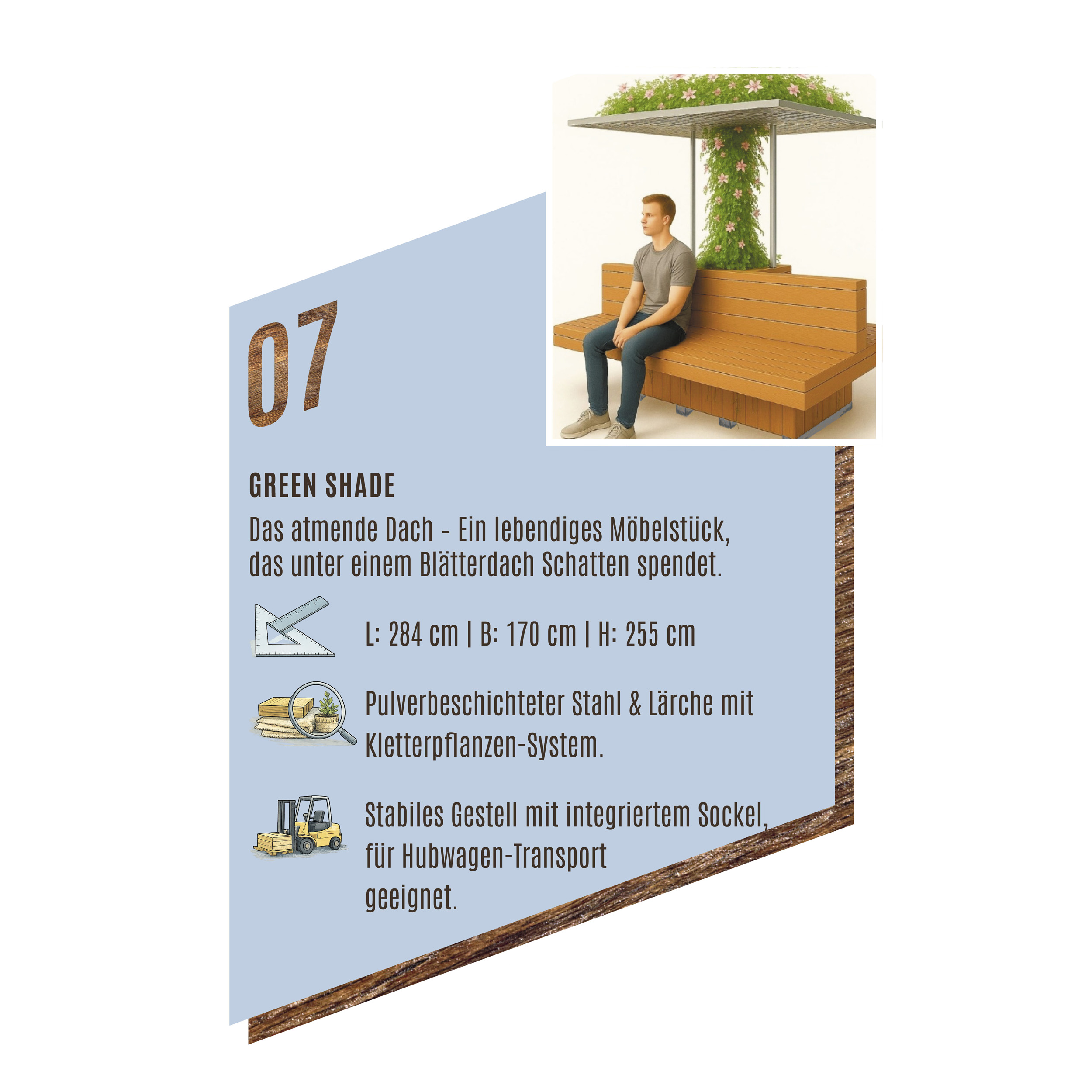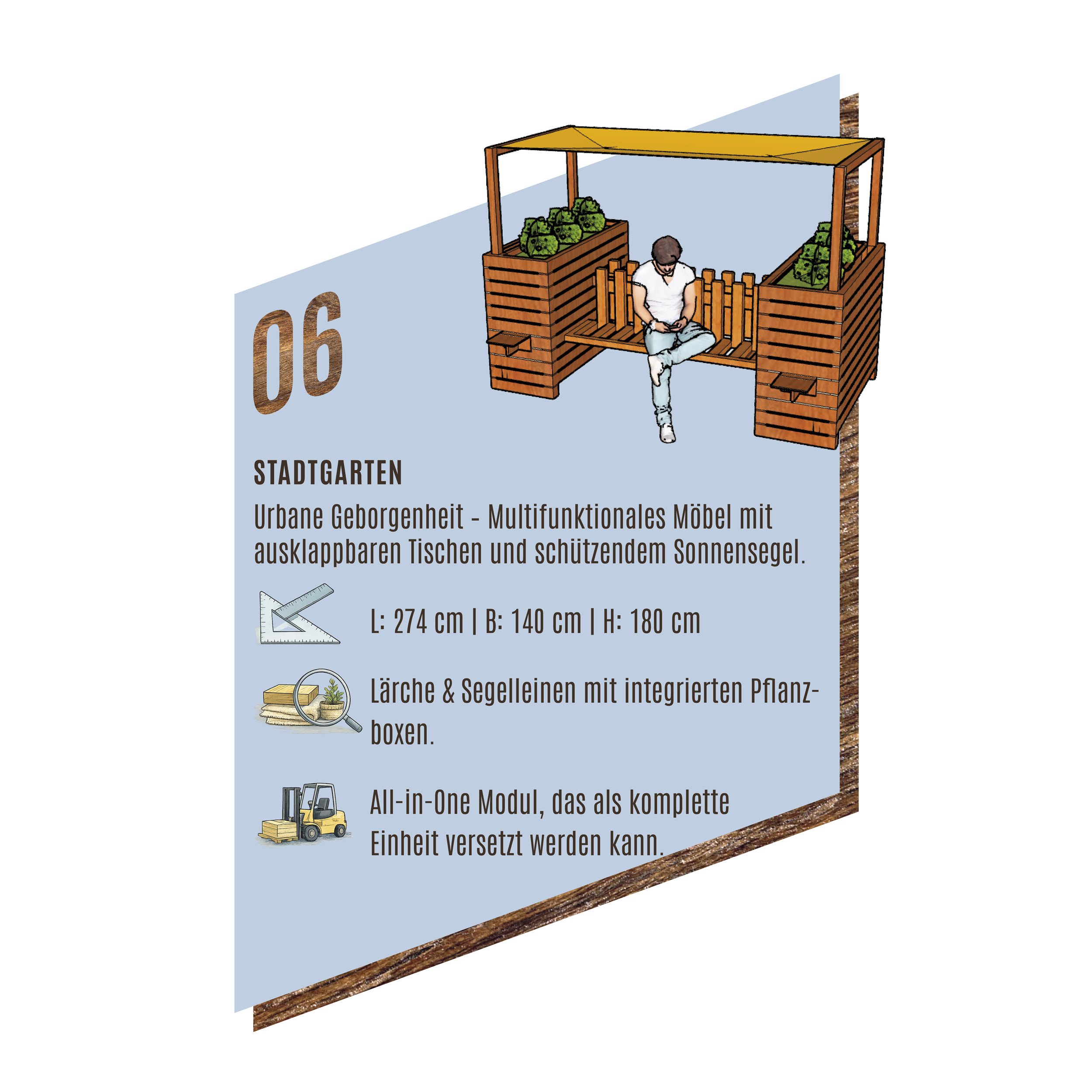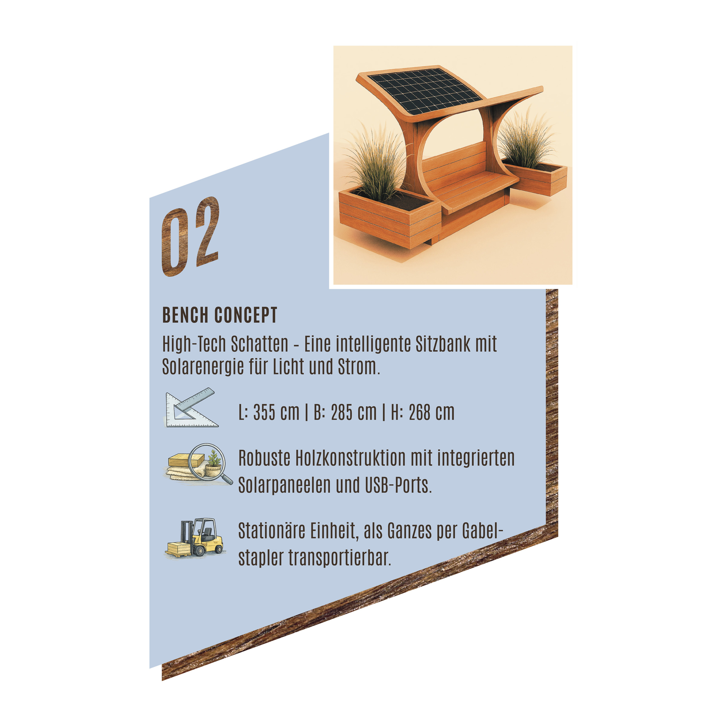 Die Idee dazu kam aus dem Umweltausschuss der Marktgemeinde Leobersdorf. Ziel war es, alltagstaugliche, flexible Elemente zu entwickeln, die im Sommer für angenehmen Schatten sorgen – ohne den Platz dauerhaft zu verbauen. Die Lösungen sollen mobil, zerlegbar und je nach Bedarf auf- und abbaubar sein.