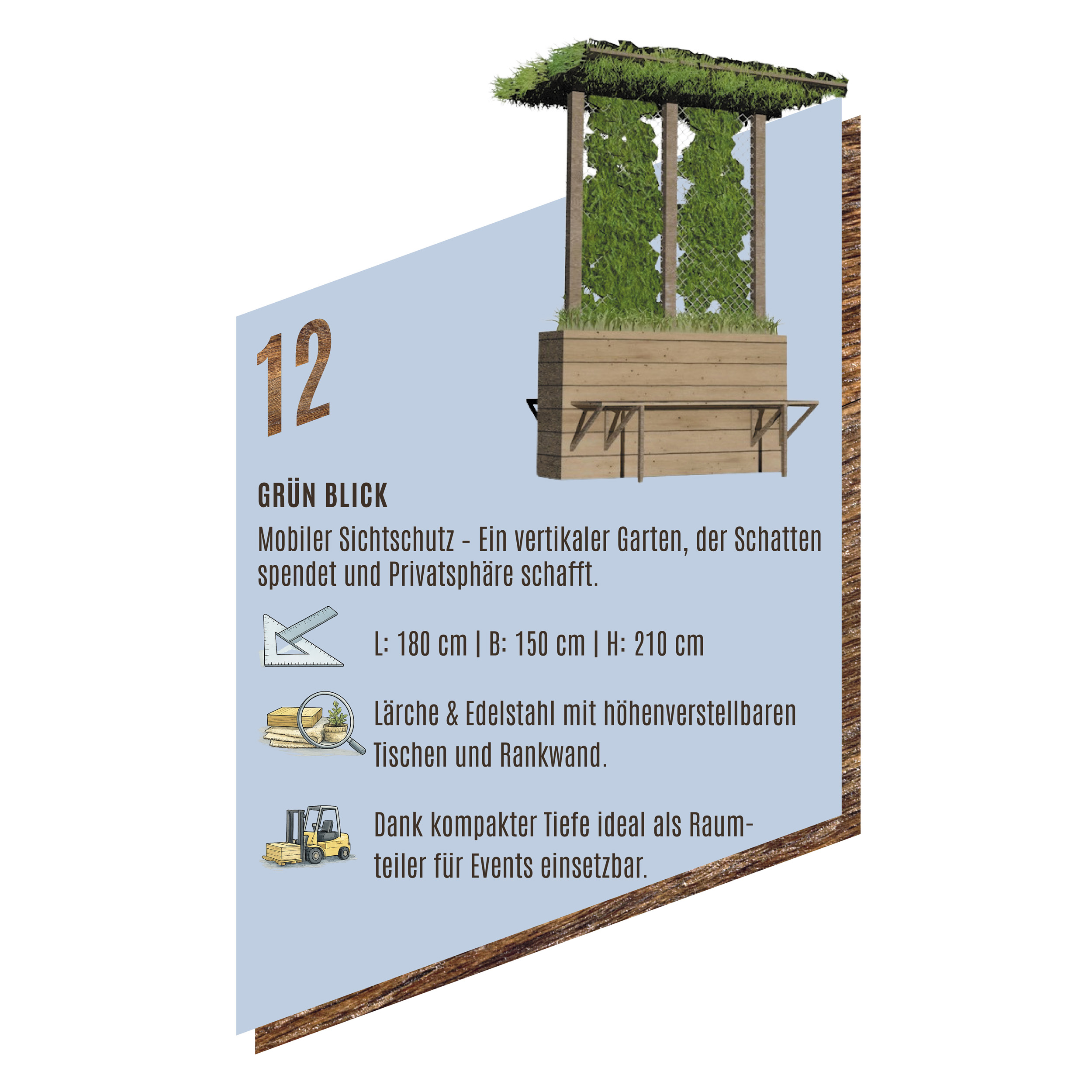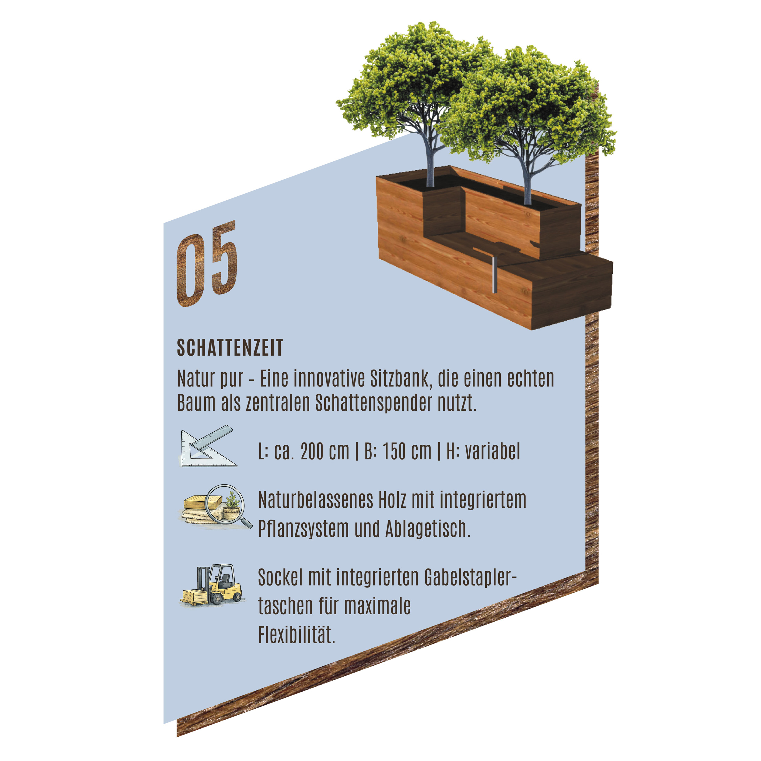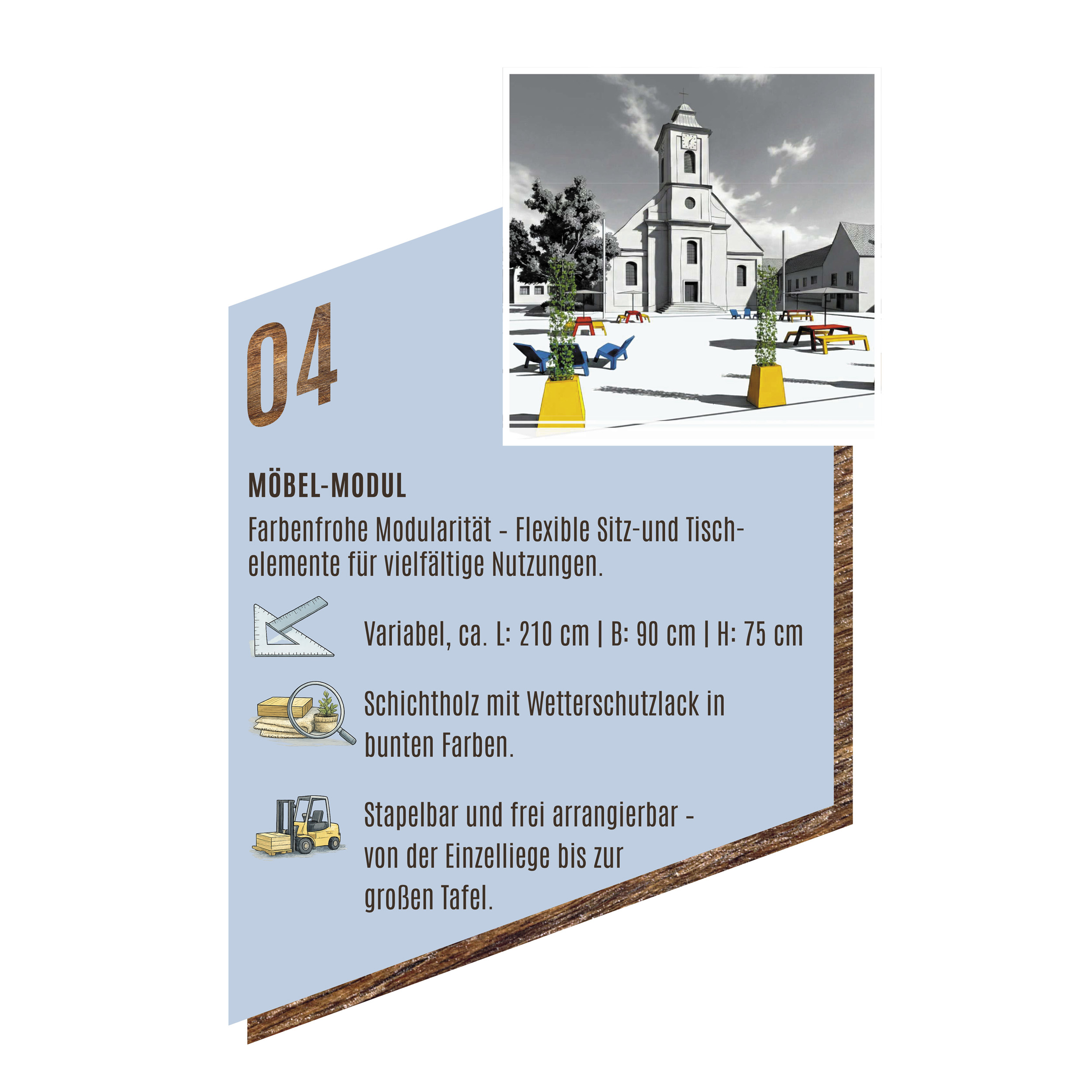 Die Idee dazu kam aus dem Umweltausschuss der Marktgemeinde Leobersdorf. Ziel war es, alltagstaugliche, flexible Elemente zu entwickeln, die im Sommer für angenehmen Schatten sorgen – ohne den Platz dauerhaft zu verbauen. Die Lösungen sollen mobil, zerlegbar und je nach Bedarf auf- und abbaubar sein.